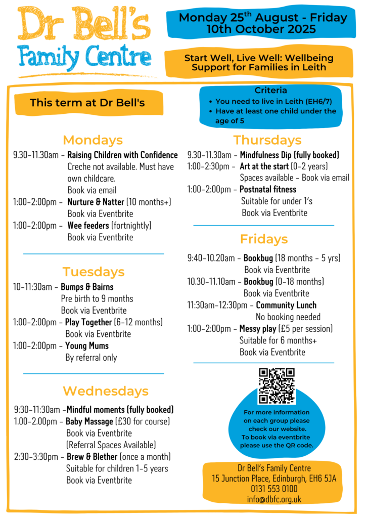 We offer a variety of holistic services to help support the parents and young families of Leith. Our programme of activities are created in partnership with our families and adapts to the changing needs of the community.